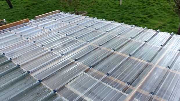 Me encanta este invernadero porque parece tan justo en la escena rural circundante y porque se hace de tal un interesante ecléctica mezcla de materiales recuperados, incluyendo naves maderas, casos de embalaje industriales gigante y descarta pares de ventanas francesas. También tiene múltiples usos, que lluvia de ovejas, aves de corral y las plantas de su techo, una sala de lectura en un día húmedo de nietos, así como el habitual y esperado durante todo el año la producción de alimentos.