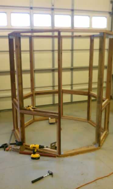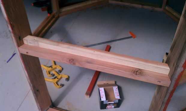 Para los listones verticales, usé los cortes de extracción 2 x 4 2 x 6. Puse entonces mi sierra de mesa a 22,5 grados y Ripeado eso ángulo de la Cala sentarse a ras con los postes y permanecer paralela con cada uno de los muros exteriores para el montaje fácil de la el cristal de la ventana y los paneles inferiores.