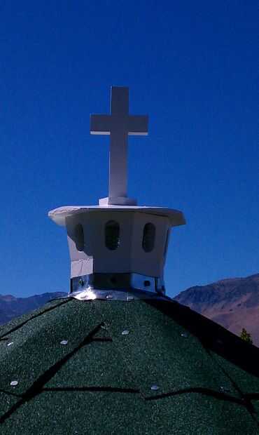 Mi bloque de canto está abierto para servir como un respiradero. Necesitaba mantener fuera la lluvia, pero ser capaz de ventilar el aire caliente. La imagen de la izquierda muestra la cúpula que he creado. Las paredes de inclinación hacia fuera de 10 grados. I dos 1" agujeros perforados uno encima del otro en cada pared y acabado con los óvalos con el anime. Luego usé un pequeño tambor lijado en el taladro para suavizar los cortes. He utilizado este sitio para averiguar los ángulos.