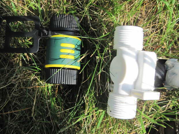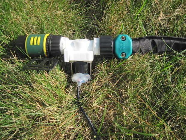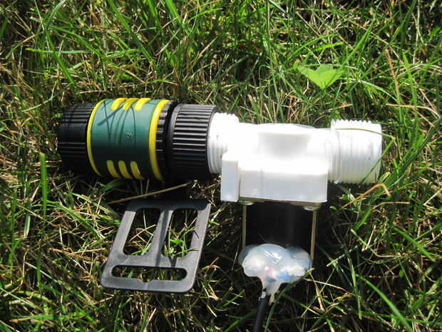 Tuvimos que comprar una boquilla que conecta la electroválvula a la manguera. La tubería de goteo de riego en casa compramos depósito conectado perfectamente al otro extremo de la válvula. Usted puede hacer su propio riego tubería comprando alguna manguera de plástico o de goma y empujando los agujeros en él. Enchufe la verruga de la pared de 12V en la caja de relés. Asegúrese de que utilizar el enchufe que está conectado a los puertos de arduino derecha. Para nuestra caja de relé que la salida superior va a la parte inferior conjunto de cables y la salida de abajo va al conjunto superior de los cables.