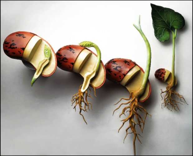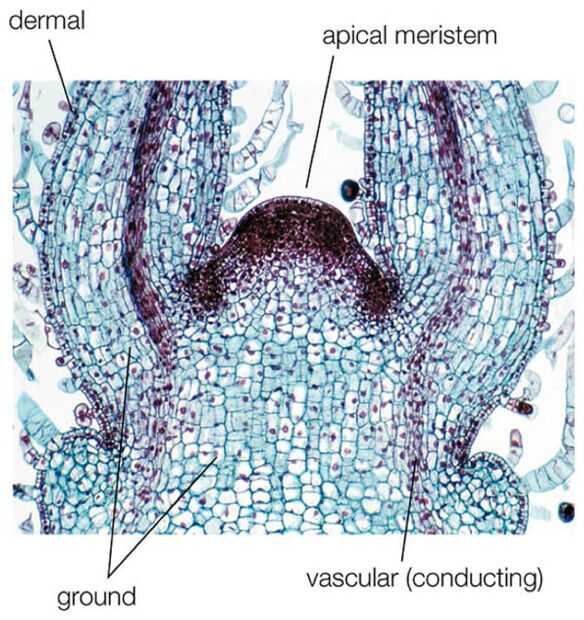 Plantas vasculares (plantas que tienen tallos y raíces) se convierten sobre todo de las semillas (un montón de plantas no vasculares como musgos y helechos se convierten de las esporas que trabajan un poco diferentemente). Una semilla consiste en tres tipos de tejidos. El tejido epidérmico es la capa externa de protección contra los elementos. Esto generalmente se incorpora a la capa de semilla dura (creo que la cáscara dura alrededor de las semillas de girasol). La capa media se llama el tejido de la planta. El tejido de la tierra es donde ocurre la fotosíntesis. El tejido vascular está en el centro del cuerpo de la planta y es donde se llevó a cabo nutrientes y agua. Las raíces son lo primero para crecer de la semilla. Las raíces se componen de los mismos tejidos excepto en las puntas de la raíz es un número de células epidérmicas llamada el casquillo de la raíz que se hizo para morir y ser desgarrado como madriguera de la raíz a través de la tierra. Las raíces proporcionan agua y nutrientes a la planta. A veces los nutrientes pueden almacenarse en las raíces como en el caso de hortalizas de raíz como zanahorias o nabos.
