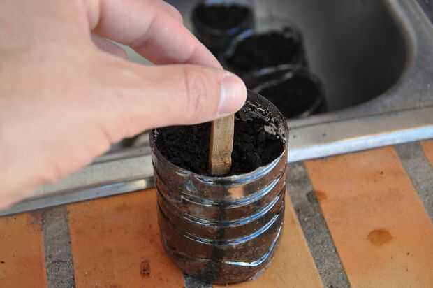 Con un palo pequeño, crear un agujero con una profundidad de 2/3 en relación con la altura total de suelo.