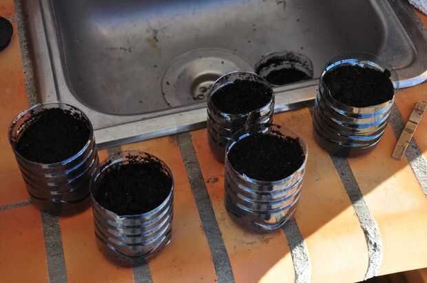 Rellenar los fondos de botellas pequeñas con suelo apropiado.