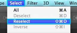 - Ir a 'Select' [en la barra de menú] > seleccionaro ir a la 'Editar ' [en la barra de menú] > Deshacer