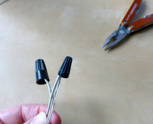 El ventilador de la computadora funciona a 12v y un conector de 3 pines. Tengo un adaptador de CA que tiene un voltaje ajustable entre 1, 5V y 12v, esto es genial ya que puedo reducir el voltaje y frenar el giro del ventilador (por desgracia, también atenúa los LEDS). Retire los conectores de cables el adaptador y el ventilador (marca que cables son positivo y que negativo/tierra primero), luego conectarlos mediante dos de los twist-en el cable conector caps.