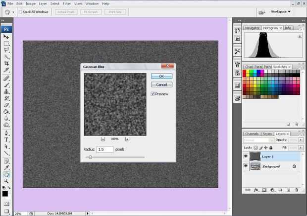 7 establecer el radio de desenfoque gaussiano a 1,5 píxeles.