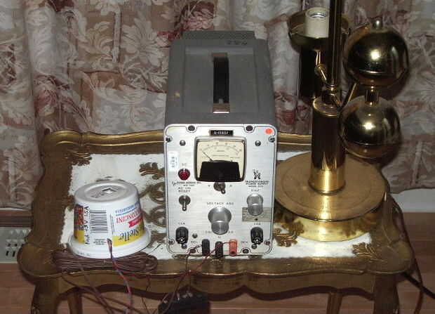 Mi primera idea que yo quería realmente era que relámpagos reales provienen de una gran nube que se cierne sobre mi cabeza. Pero después que él, me di cuenta de que un rayo en una fiesta de Halloween es potencialmente peligroso. Un arco eléctrico viv