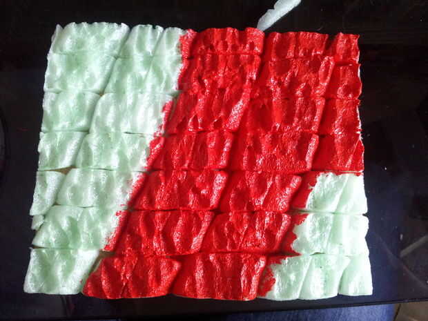 En este caso, usé el rojo como el subpelo y amarillo cepillado seco sobre la parte superior.