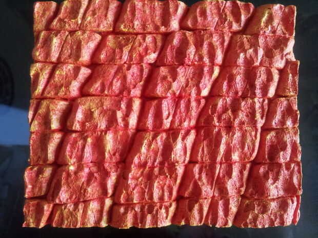 Puse la cara de la roca junto a un pedazo de la prueba de camino fangoso que hice.