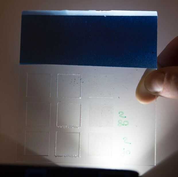, tenemos una carga de LEDs SMD libre, y quería probar cómo miraba embebido en acrílico.Usando el cortador láser, hace agujeros en el acrílico para los LEDs.Los LED tienen las almohadillas en los extremos y son un poco más largo (3,5 mm) que el acríl
