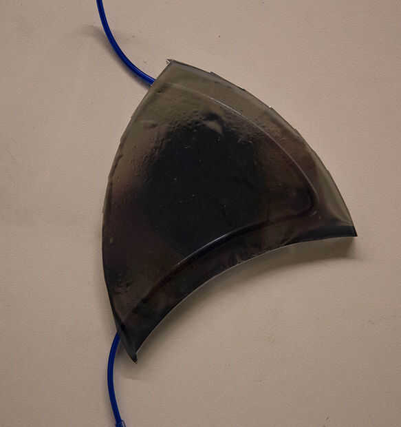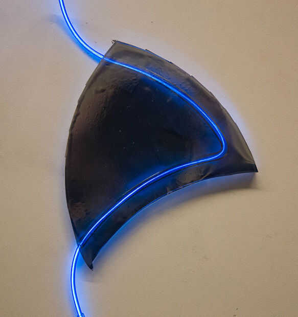 El efecto funcionado bien, pero resulta que EL cable no es tan brillante en comparación con los efectos de la anterior iluminación biselado. Además, debido a la forma espejos una forma trabajar, mientras más brillante esté la habitación más opaca la superficie aparece (se puede ver en la foto es aún translúcida), pero entonces debe ser más brillante para compensar la luz oculta. Con una luz más brillante (por ejemplo, por empotrar LED en lugar de EL) y con menos mierdos espejos unidireccionales, esto podría ser un efecto genial.