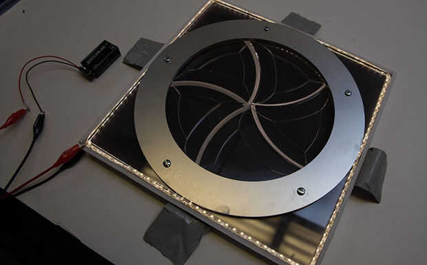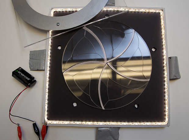 No hay mucho más a la Asamblea - construyó una caja poco profunda de algunos foamcore, alineados los bordes interiores con LED y luego poner en una hoja de acrílico con una circular de corte para mantener el iris deja en su sitio (que por desgracia no encuentro el archivo para!) que el anillo en la parte superior y un pedazo de cartón pluma que para ocultar el interior de la caja. Algo estúpido, usé cartón pluma para la parte de atrás de la espalda, usted no puede realmente perno, el resultado es que no había nada con todo en lugar de la parte posterior. Así que definitivamente quisiera incluir un duro atrás para que no caiga aparte!