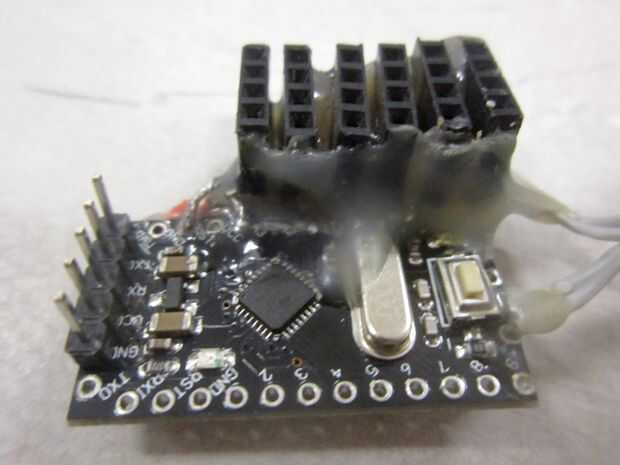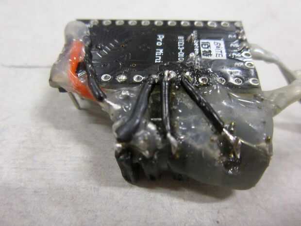El conector tiene las siguientes líneas comenzando desde el lado más cercano a la Arduino: GND, 5V, duda y estruendo. Me daba pereza hacer un PCB adecuado para la soldadura de las cabeceras, por lo que de hecho una escalera fea de cables inicialmente sostenido en el aire por un tercio de la mano. Las líneas de tierra de 6 todos los encabezados están conectadas juntos por un trozo de alambre rígido como los de un resistor a través del agujero, igual para las líneas de 5V de los conectores. Si las fotos y el diagrama del paso 1 son suficientes para seguir entonces no necesita leer todos los detalles a continuación. Lo siento no tengo una foto de antes de que todo el asunto estaba cubierto de pegamento caliente, se puede ver también tuve algunos rediseños allí... la cosa tiene juntos Ok Aunque hice unos cientos de kilómetros con ella.