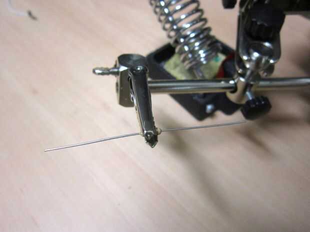 - a partir de agarrar uno de los extremos una rúbrica femenina con alicates, toque uno de sus pines para el cable de la resistencia, calor de un momento para la espiga de atenerse al alambre de la lata ya presente.