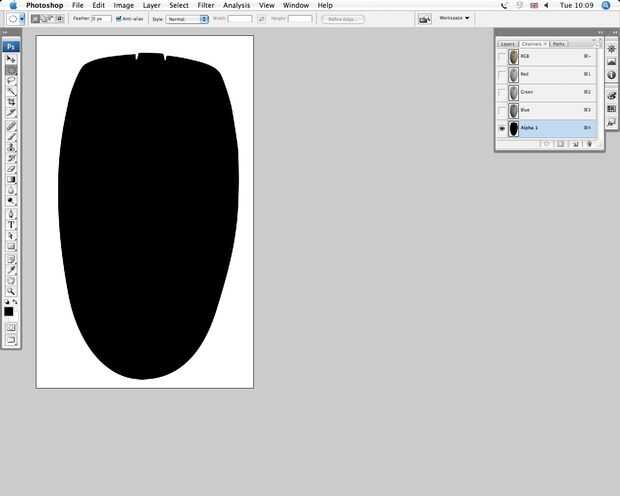 Siga los senderos suministrados para pegar nuevas capas en el documento de trabajo de Mouse_5.jpg (etiquetado lo 'Top ratón interno') y Mouse_6.jpg (etiquetado lo 'Top ratón externo'). Cuando estés contento con el posicionamiento de las capas, generar una selección de su capa superior y crear un canal alfa nuevo llenar la selección activa con blanco. Pintura viene hacia fuera de la ranura de la rueda usando un blanco, pincel de bordes duro, y luego hitCmd/Ctrl + I para invertir el canal.