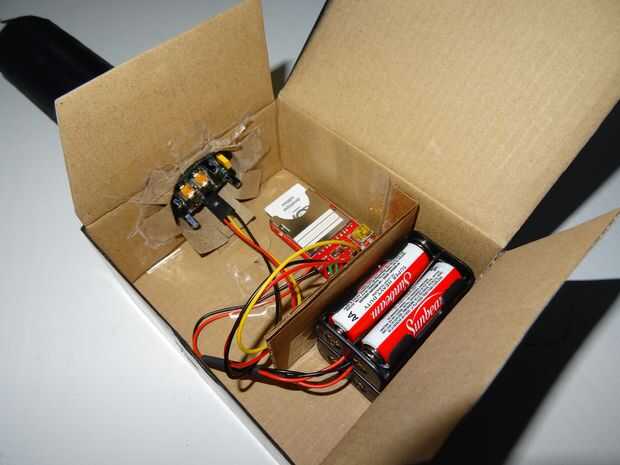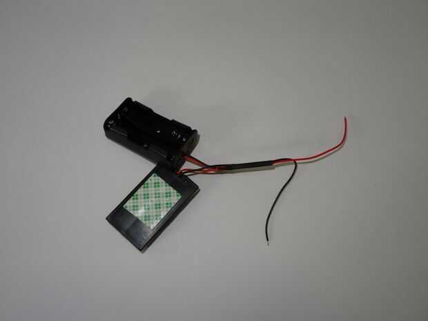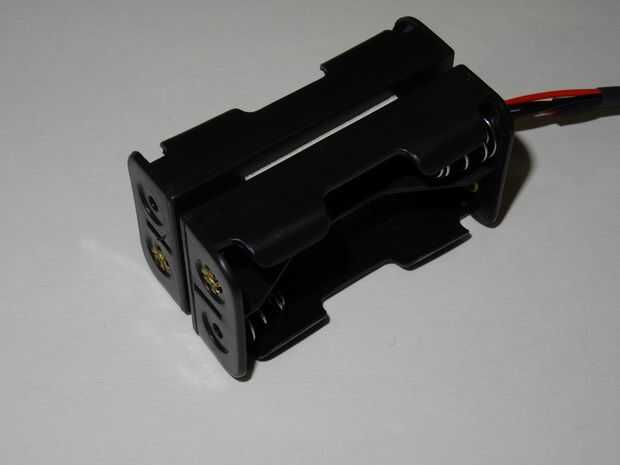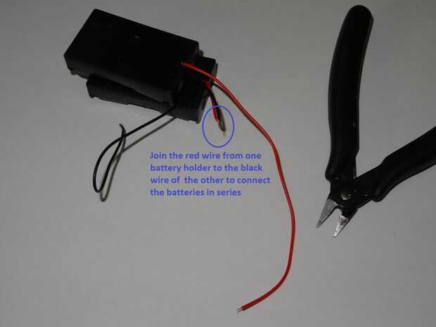 Puesto que sólo tenía dos portapilas, conecté 2 de ellas en serie para crear una fuente de batería de 6V. Todo esto requiere es que conecte el cable rojo desde el primer titular de la batería al cable negro del segundo titular de la batería. Los titulares de la 2 batería se pegan con cinta de doble cara. Si tienes un quad portapilas, ya estás por delante!