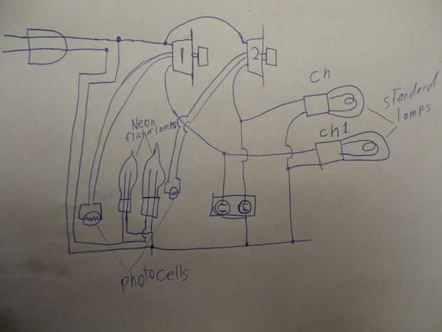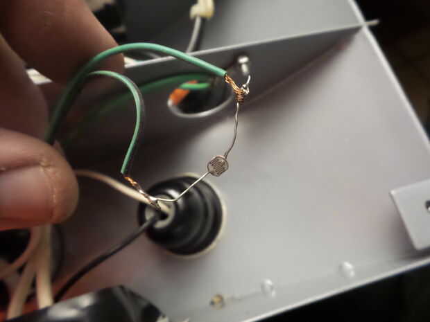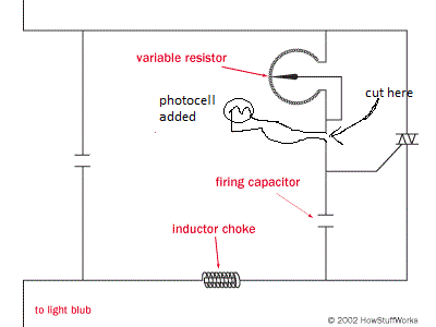 Alteré los 2 atenuadores para que en lugar de sólo la perilla dimmer, también fueron enganchados a una célula fotoeléctrica de una lamparita de $3.