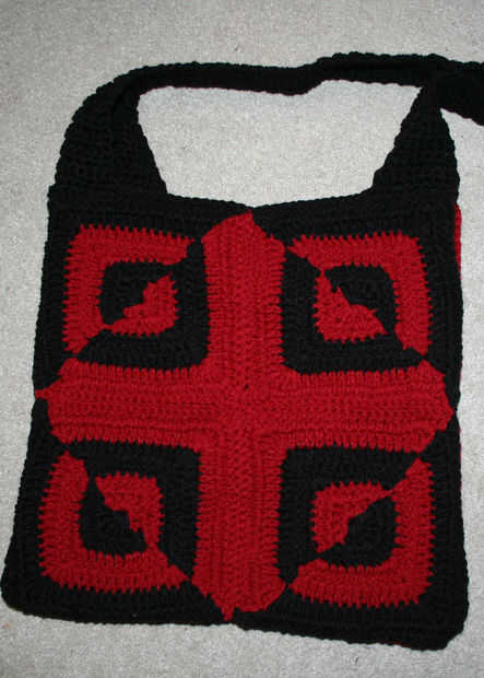 hice esta bolsa especial como un regalo de Navidad para un amigo que le encanta la moda; bolsas especialmente funky! Patrón aparece en Crochet hoy! Revista. Llamado la "bolsa de efectos especiales" se hace de los 8 motivos cuadrados cosidos junt