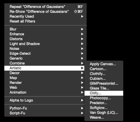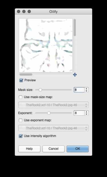Ahora volver al menú "Filtros" y seleccione "Filtros > artístico > Oilify" como en la imagen 4, arriba. Obtendrá el cuadro de diálogo en la imagen 5 y de nuevo utilice mis presets en la lista para obtener una versión de alisado-hacia fuera del dibujo--algo que parece una versión de acuarela o tinta de la imagen original. Haga clic en "Aceptar" para aplicar los cambios.
