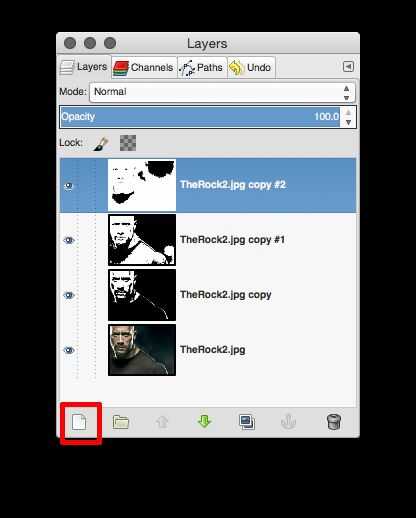 Ahora que ya tenemos 3 capas que reflejan diferentes Estados de brillo de la imagen original, seleccione la imagen de arriba y haga clic en el botón "Crear nueva capa" en la ventana de "Capas" (como en la primera imagen, arriba). Cuando aparezca el cuadro de diálogo "Crear nueva capa", haga clic en "OK" y obtendrá una nueva capa como la capa superior y en la segunda imagen arriba. Si ahora pulsa el botón "Duplicar capa" dos veces, obtienes dos capas más de vacías como en la imagen 3, arriba.