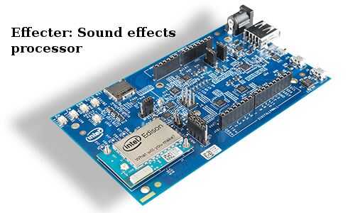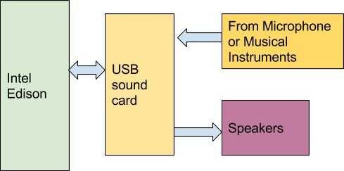 En el video, puedes ver me use la construcción para modificar la voz de forma y suena de una programa de piano en línea usando diversos efectos de sonido. La salida desde el piano en línea ejecutado es la entrada a la tarjeta de sonido conectada a la Edison que procesa el audio entrante según el efecto seleccionado y salidas en la salida de la tarjeta de sonido (conectado a Edison) conectada a los altavoces.