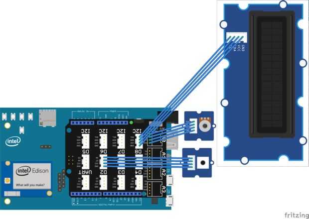 Es necesario montar el escudo base de Grove en el Edison y a raíz de las conexiones: