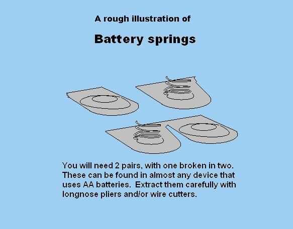 -Resortes para dos baterías de AA. Sugiero destrozando un dispositivo no deseado que utiliza 2 o más AA baterías. Sacar los resortes para uso en la lata Altoids.