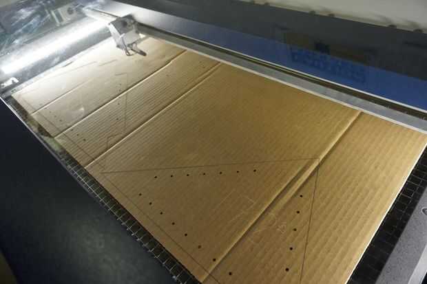 Como los cuadros de bicicleta eran realmente grueso cartón corrugado, duplicamos todas las líneas de corte para que el láser iba a hacer dos pasadas.