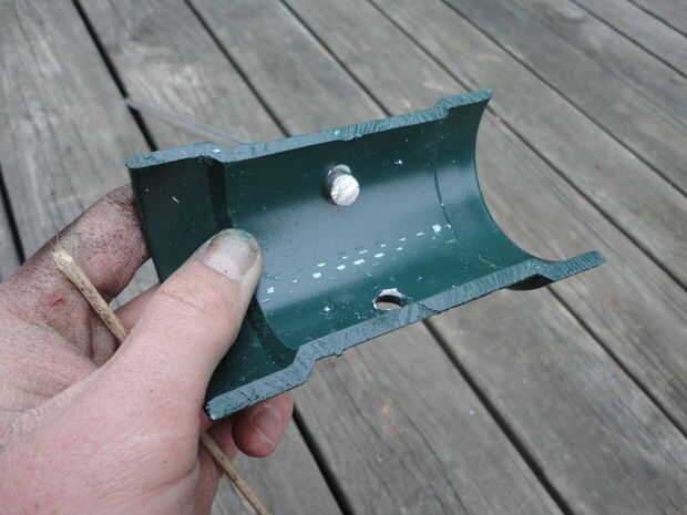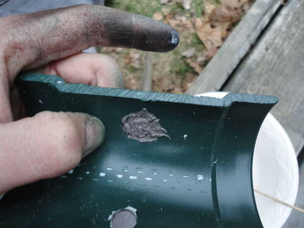 Luego perfore los orificios que están frente a la unos a otros que también son lo suficientemente grandes para el metal rods(legs). Siguiente vas a necesitar remover algunos epoxy, para mantener las piernas en su lugar. No uno en el tiempo y dejarla secar, y luego hacer otra.