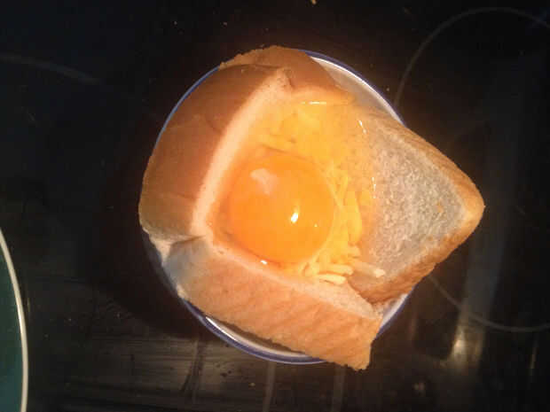 Hornee a precalentado 350 F por 12 minutos para el huevo un poco mocosa o 15 minutos para el huevo más firme