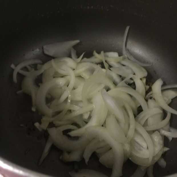Agregar la cebolla, sofría hasta que se convierte en traslúcido.