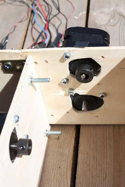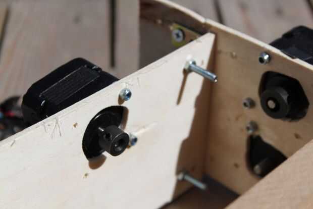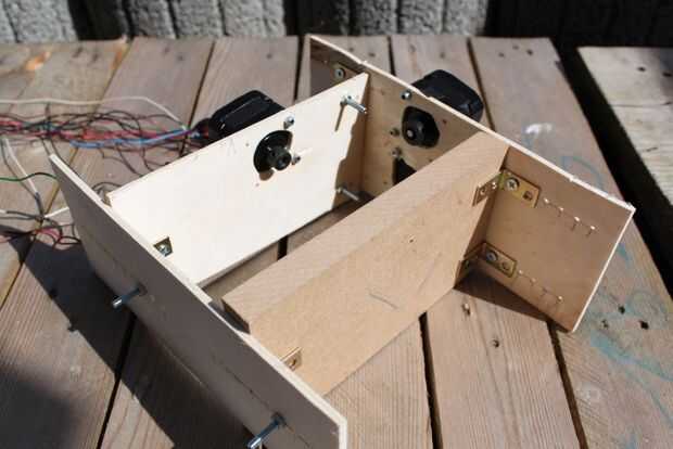 Después de montar los motores a las piezas de madera contrachapada atornilladas todas las partes.