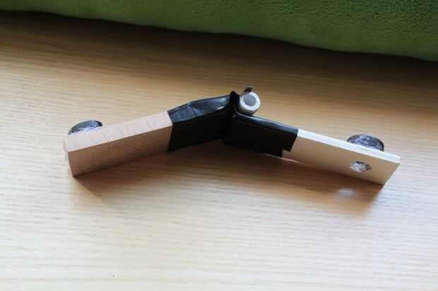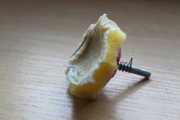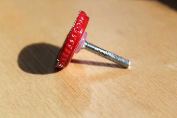 A una de las tapas caliente pegué un tornillo que dijo con voz áspera a los devanados por lo que se deslizan a través del orificio en el mdf sin oponer resistencia (también podría hacer un conjunto ligeramente más grande o utilizar un clavo en lugar de un tornillo, pero sólo tomé, lo que tenía).