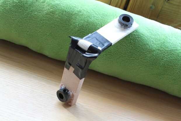 Esta pieza tiene que presionar el huevo contra el opuesto motor paso a paso, por lo tanto llevó aparte a un bolígrafo, llevó a cabo la primavera y colocar en el tornillo.