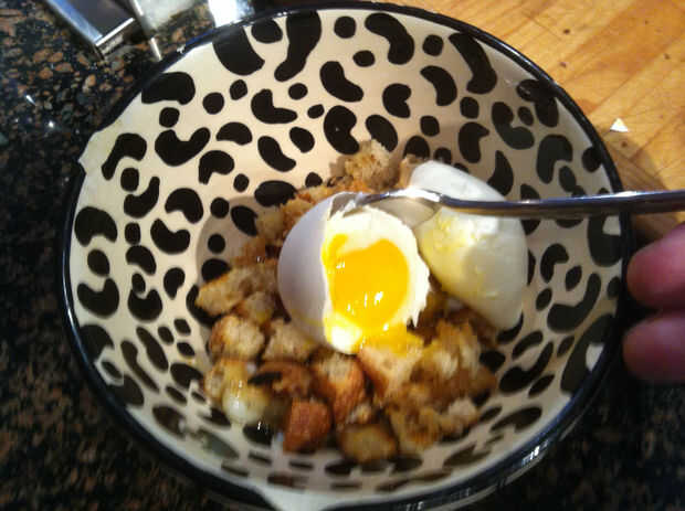 Yo uso una cuchara cappuccino para sacar los huevos porque es más pequeño. Alternativomente, uno podría agrietar las cáscaras y pelar pero a veces los huevos se adhieren a la cáscara de una manera muy molesta.