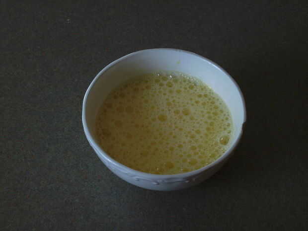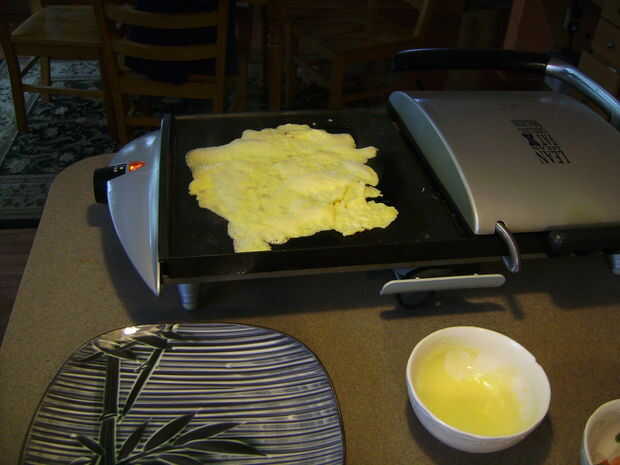 A continuación voy a hacer la envoltura del huevo. Es como hacer un crepe. Batir el huevo y calentar la sartén o plancha.