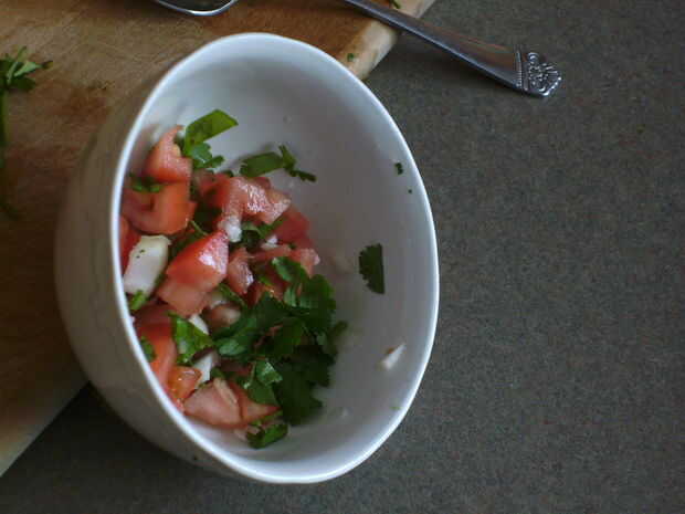La salsa habrá picado el tomate, cebolla, cilantro y jugo de limón. Usted puede Agregar especias como sal, pimienta y Chile Jalapeño como usted guste.