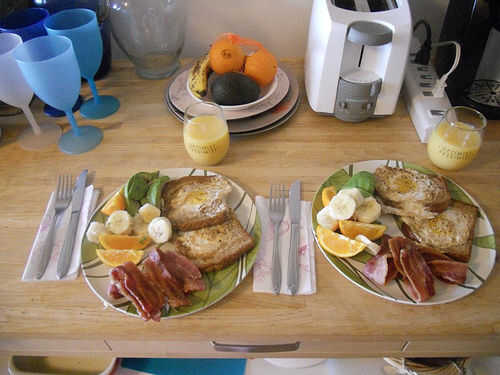 Servir como parte de un desayuno balanceado! Aquí nos estamos comiendo frutas y bacon! Era frío entonces porque yo seguí tomando tantas fotos, pero aún delicioso.