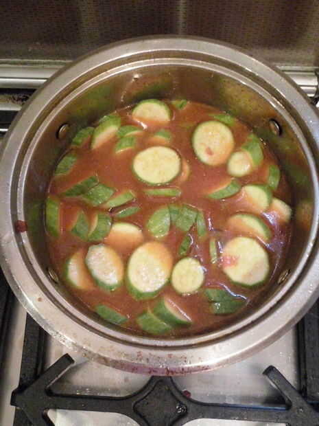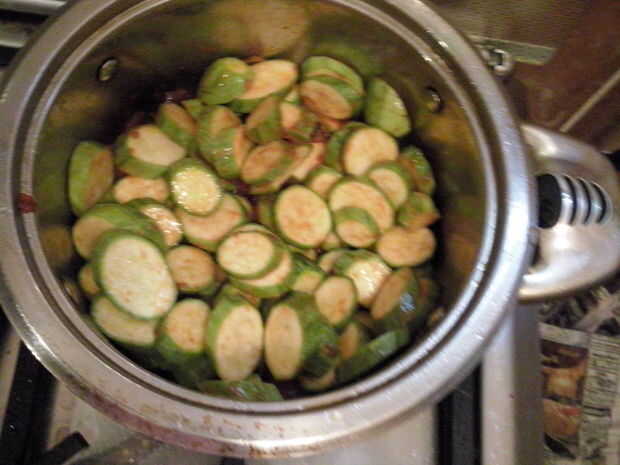 -Añadir el caldo y completar con agua hasta que el calabacín se hunden