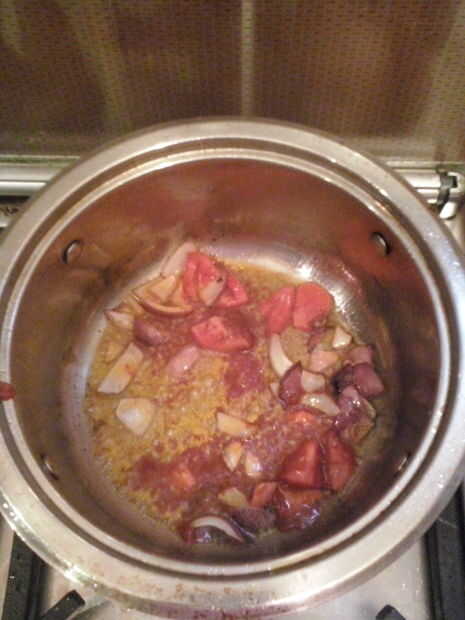 -ahora añadir el tomate y la salsa de tomate y revuelva rápidamente para no dejarlo en fuego pero tenga cuidado de las manos porque la margarina va por todas partes