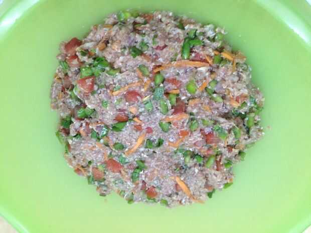Mix vegetal todo picado a la carne de vacuno.
