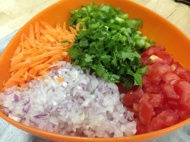Cortar la cebolla (una grande) y una zanahoria grande y un apio picado