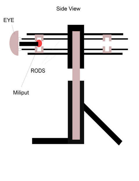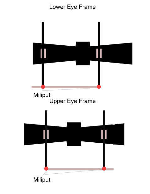 Las varillas largas ahora deben deslizarse bien a través de los soportes de U. Ahora tenemos que pegar la Junta de rótula de lego (8.4) en el marco de ojo con miliput. Esto es muy simple, sólo rodar una bola de milliput y colóquelo entre la media de las posiciones de barra de U y deje secar, el plástico se forma muy bien en el plástico de la rótula de lego pero usted tendrá que empujar a través de los agujeros en el marco de ojo para asegurar a eso como una especie de enchufe. (8.5)