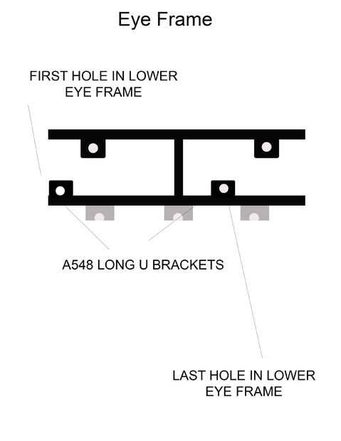 Para finalizar el marco del ojo que necesitamos dos soportes A548 U más (igual que hemos utilizado en el marco superior del ojo) necesitamos unir éstos al primer agujero en el soporte inferior izquierda y el último agujero en el soporte de la parte inferior derecha como se indica en el punto 8.1.