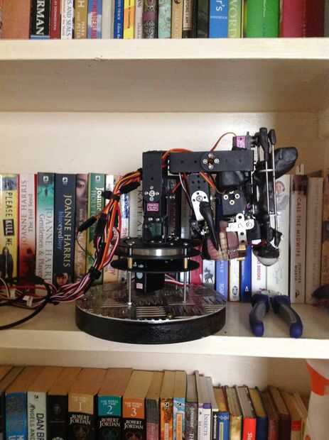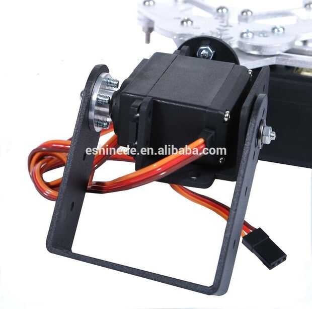 Tomar un soporte robot multifuncional (2.1) y coloque un servo (2.2) y un gran soporte de U robot (2.3). Tomar el soporte en L y el perno en la parte posterior del soporte multifuncional usando M3 pernos y tuercas (2.4). Coloque el otro extremo de la abrazadera de L a la plataforma superior de aluminio de la base robótica rotacional (2.5). Soporte U negro grande A adjuntar al servo mediante un cuerno del servo circular (2.6) y una taza bola y brida teniendo en la otra (formación estándar) hasta el final del soporte L grande fijar otro soporte en L frente a lo opuesto de una forma de H. Al frente de este mecanismo de fijar el lugar de cuello de la guitarra al frente para acabar con los tornillos suministrados con la instalación. Esto completa el cuello establecido. (2.7). (2.8)