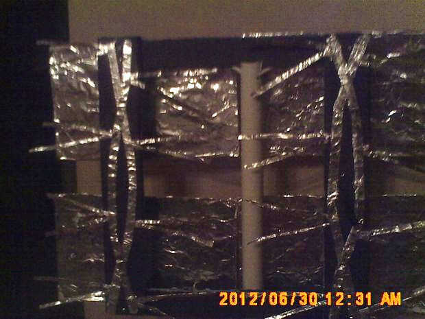 Nota: cinta adhesiva el cable plano en la misma parte correspondiente de la hoja sobre la otra mitad de la antena. En la elaboración de este instructable con no tenía ningún cable de 300 ohmios aún.