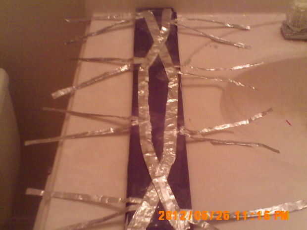 Nota: Asegúrese de no dejar la lámina dos secciones toquen donde se cruzan. Hemos utilizado liberalmente tapeto Asegúrese de que no habría ningún contacto.