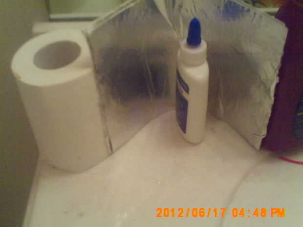 El papel y el papel de la curva en forma parabólica cóncava con la parte Brillante en el interior. Esto servirá como el plato reflectante para su señal.