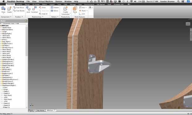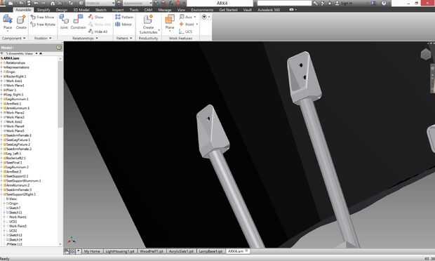 Todos mis diseños se realizaron con el CAD para mi los sujetadores en la siguiente pantalla, para asegurarse de que todo iba a caber justo. Para mí, moviéndose rápidamente hacia adelante y hacia atrás entre "tuercas y tornillos" pensando y diseño conceptual o estética realmente me ayuda a establecer la conexión más limpia entre mi intención del diseño y las formas de que crear. Su un flujo de trabajo realmente literal entre forma y función.