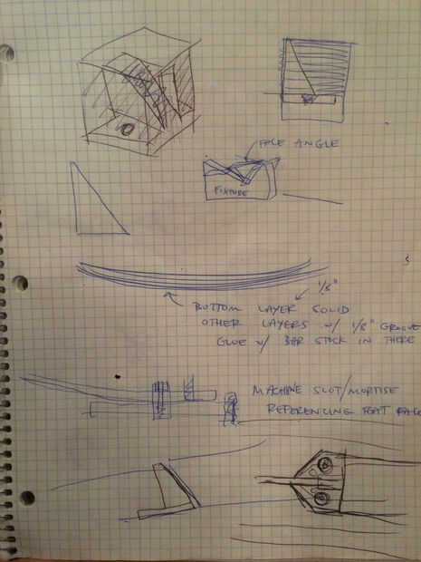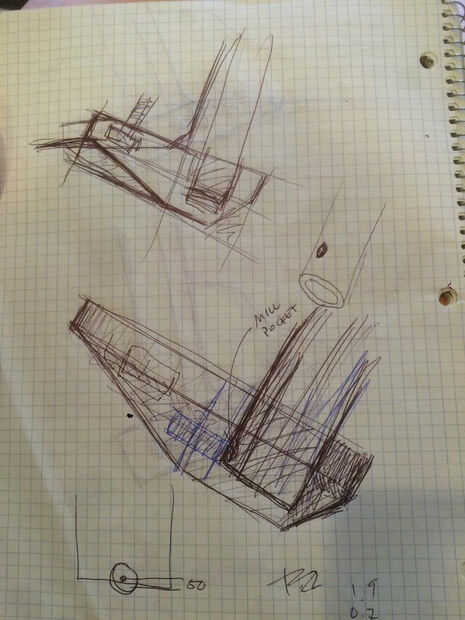 En los bocetos, estoy intentando encontrar formas visualmente agradables que relaciona con las otras formas en el diseño. Decidí usar insertos de latón enroscados en la madera como soporte para tornillos de máquina para sostener los soportes. He utilizado pisos y tornillos para unir los diferentes soportes. Los diseños también están tratando de incorporar la geometría de referencia para el mecanizado en el formulario para el diseño. Mediante la adición de una superficie que sea paralelo o perpendicular a un ángulo clave que necesitaba para la máquina, evitaba tener que hacer los bloques de ángulo especial para mí.